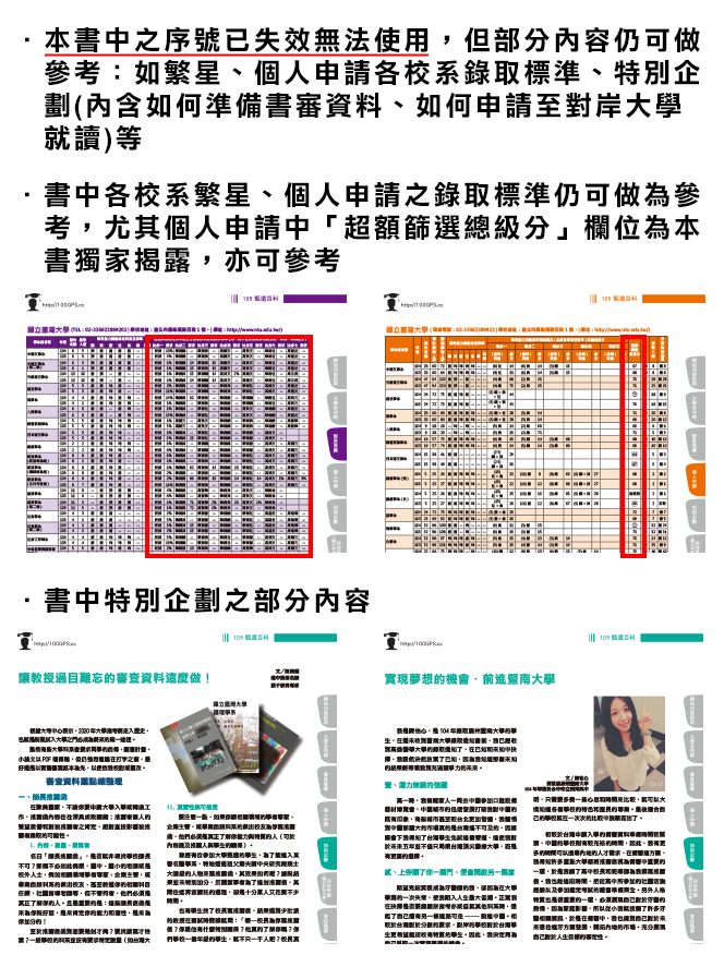 • 全國唯一揭露個人申請校系同級分超額篩選總級分之書籍。