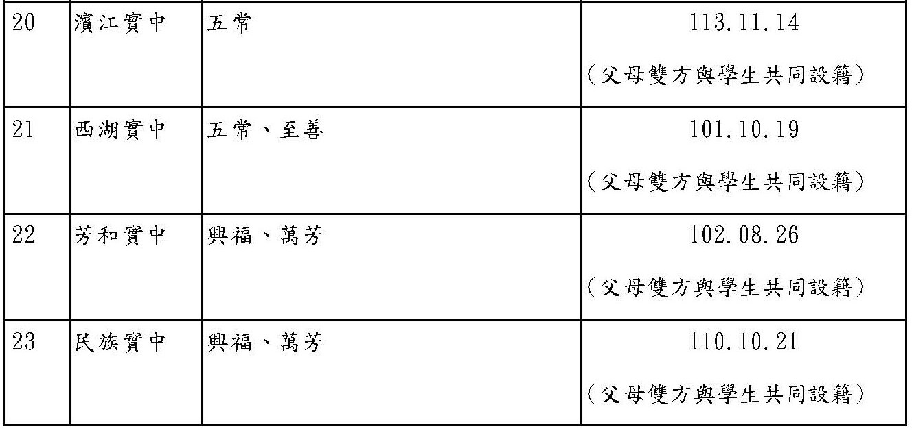 【情報】114年台北市國中國一七年級入學額滿學校 23所須事先設籍學校