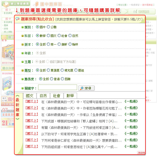 服務總覽‧如何使用題庫區? 【現在位置: 一點通學習 > 服務總覽 > 如何使用題庫區?