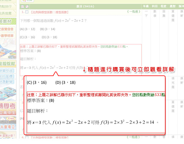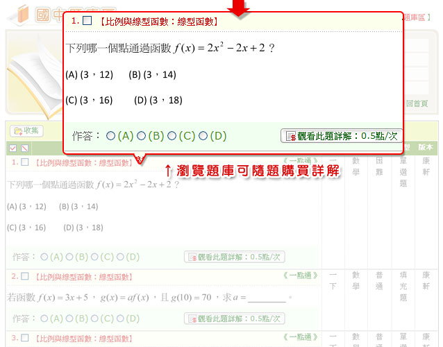 步驟4承上,進行各題的回答與購買詳解,購買後可立即觀看詳解。